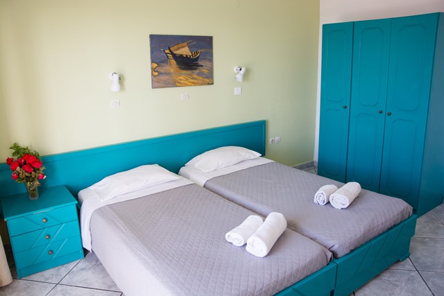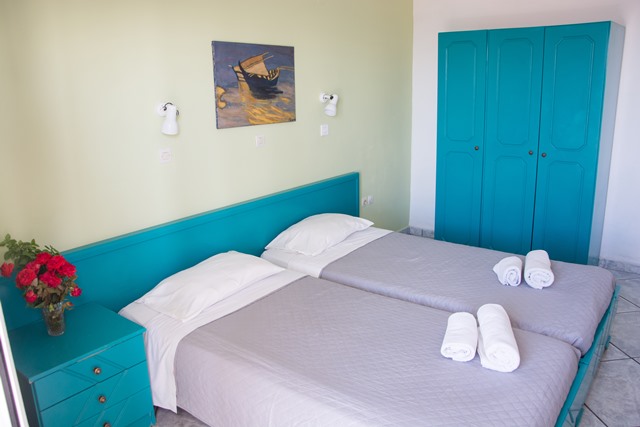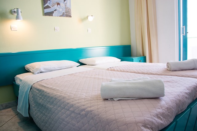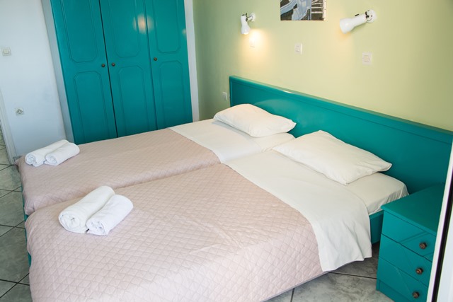 Two bright, large and friendly rooms per apartment with a small equipped kitchen, balconies with sea view, three or four beds (depending on the type of the apartment), invite you to linger.